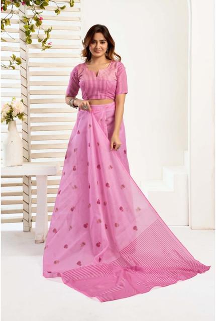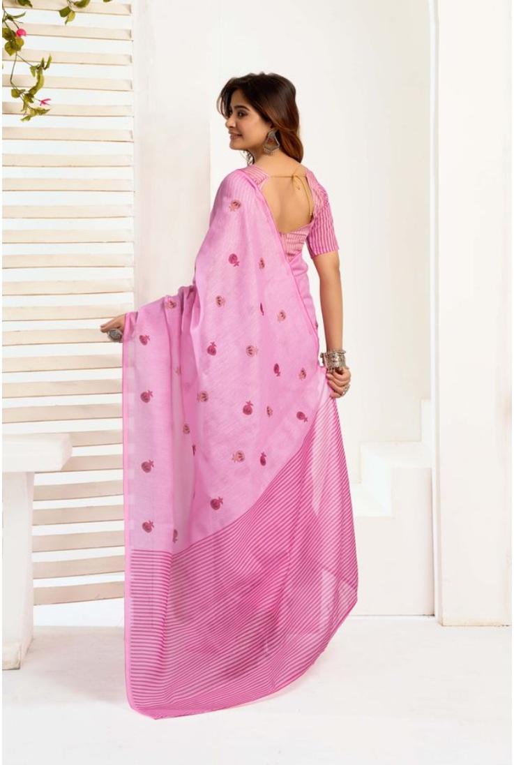 Generic Women's Linen Cotton Printed Ready To Wear Saree With Unstitched Blouse 5.5 Mtr (Light_Pink)