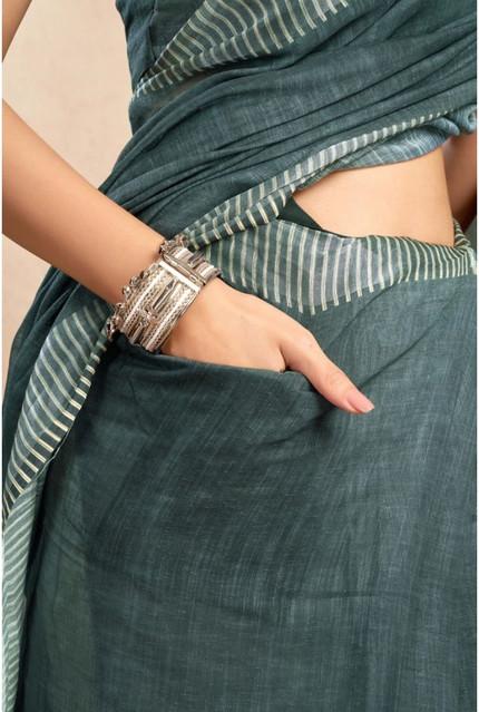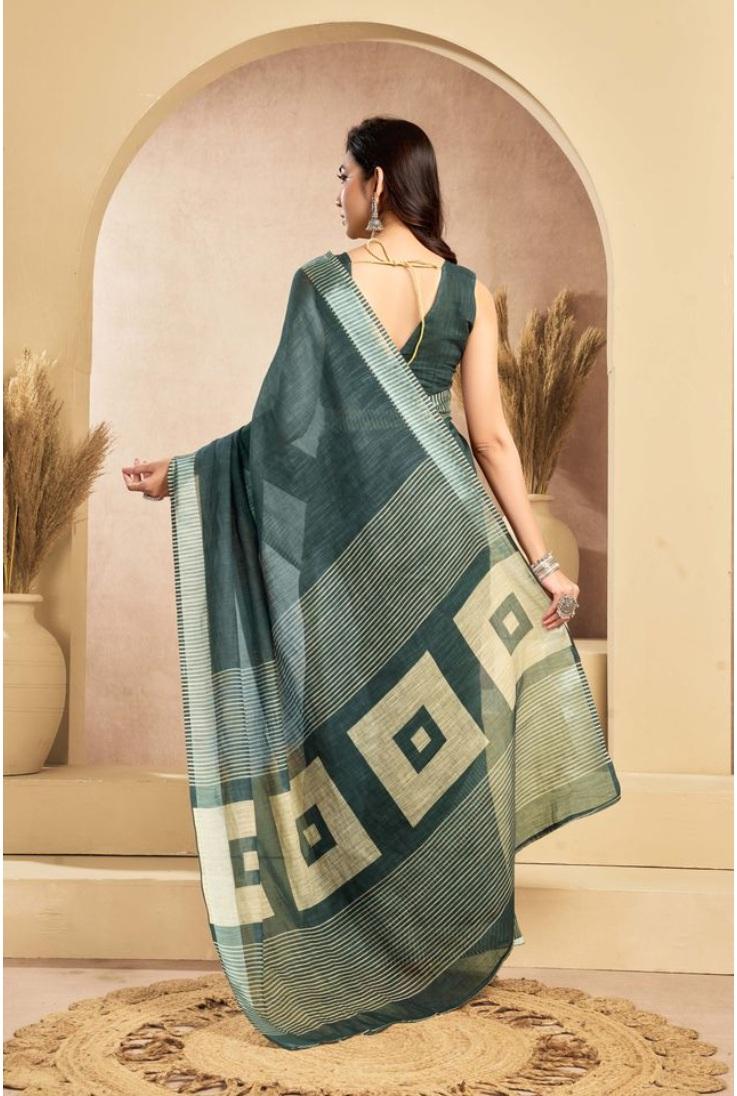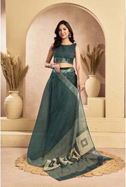 Women's Linen Cotton Printed Ready To Wear Saree With Unstitched Blouse 5.5 Mtr