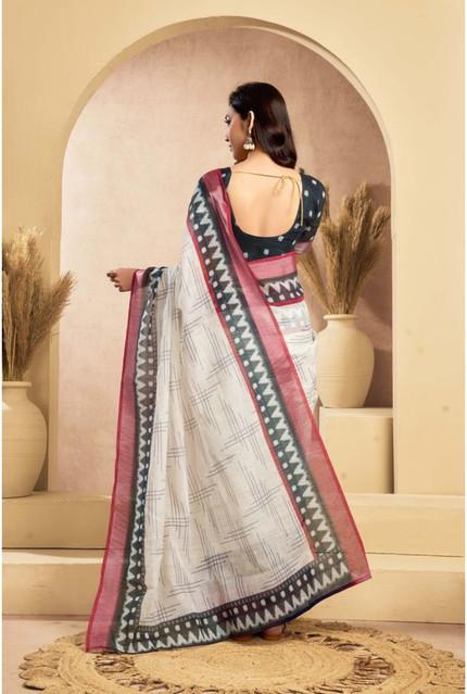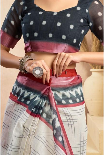 Women's Linen Cotton Printed Ready To Wear Saree With Unstitched Blouse 5.5 Mtr