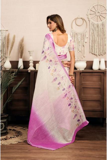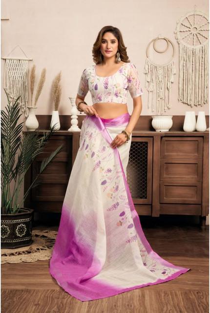 Women's Linen Cotton Printed Ready To Wear Saree With Unstitched Blouse 5.5 Mtr