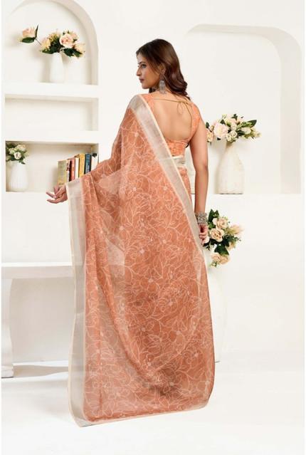 Generic Women's Linen Cotton Printed Ready To Wear Saree With Unstitched Blouse 5.5 Mtr (Peach)