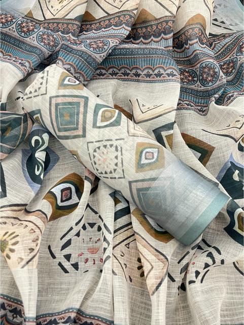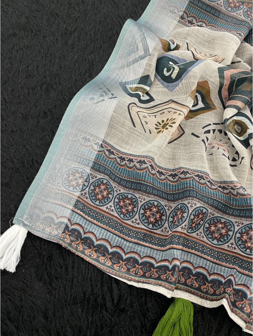 Women's Linen Cotton Printed Saree With Unstitched Blouse 5.5Mtr