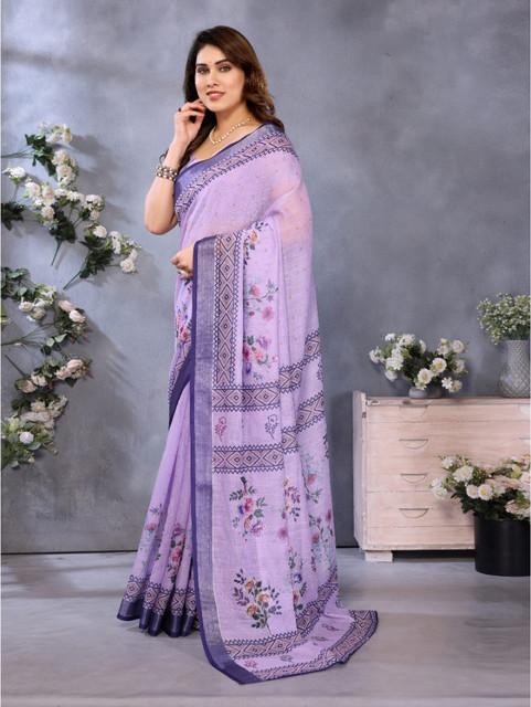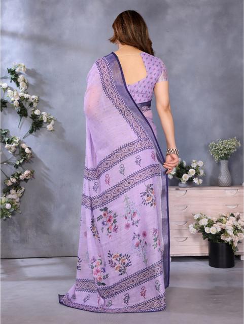 Women's Linen Cotton Printed Saree With Unstitched Blouse 5.5Mtr