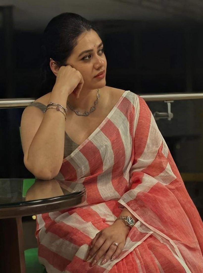 Women's Linen Printed Saree With Unstitched Blouse 5.5Mtr