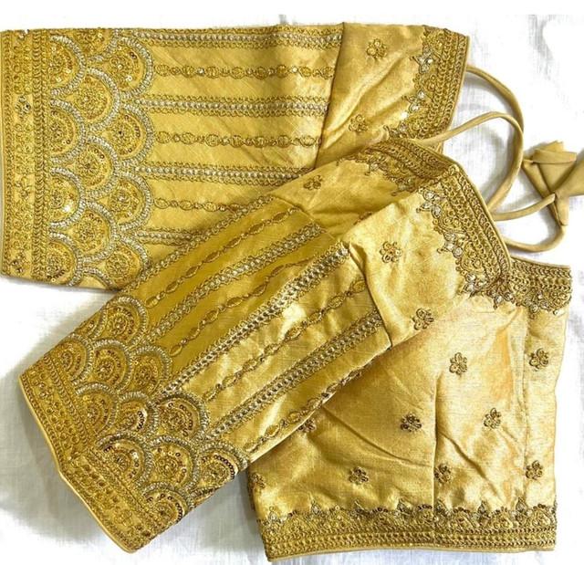 Generic Women's Phantom Silk Embroidered Designer Neck Padded Blouse (Beige 38 Ready (Alterable up to 42)