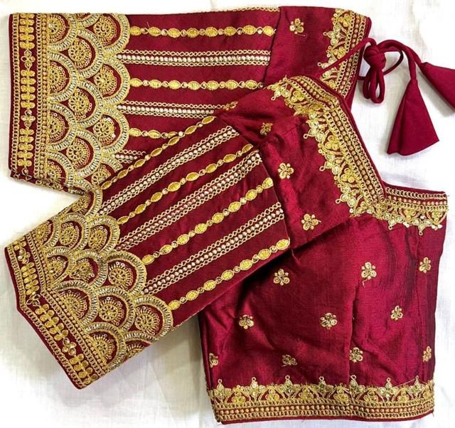 Generic Women's Phantom Silk Embroidered Designer Neck Padded Blouse (Maroon 38 Ready (Alterable up to 42)