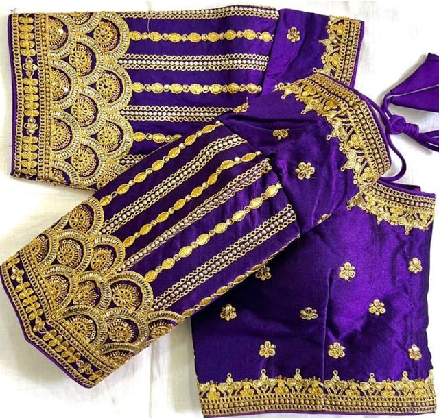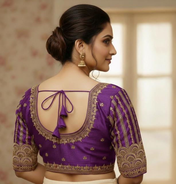 Generic Women's Phantom Silk Embroidered Designer Neck Padded Blouse (Purple 38 Ready (Alterable up to 42)