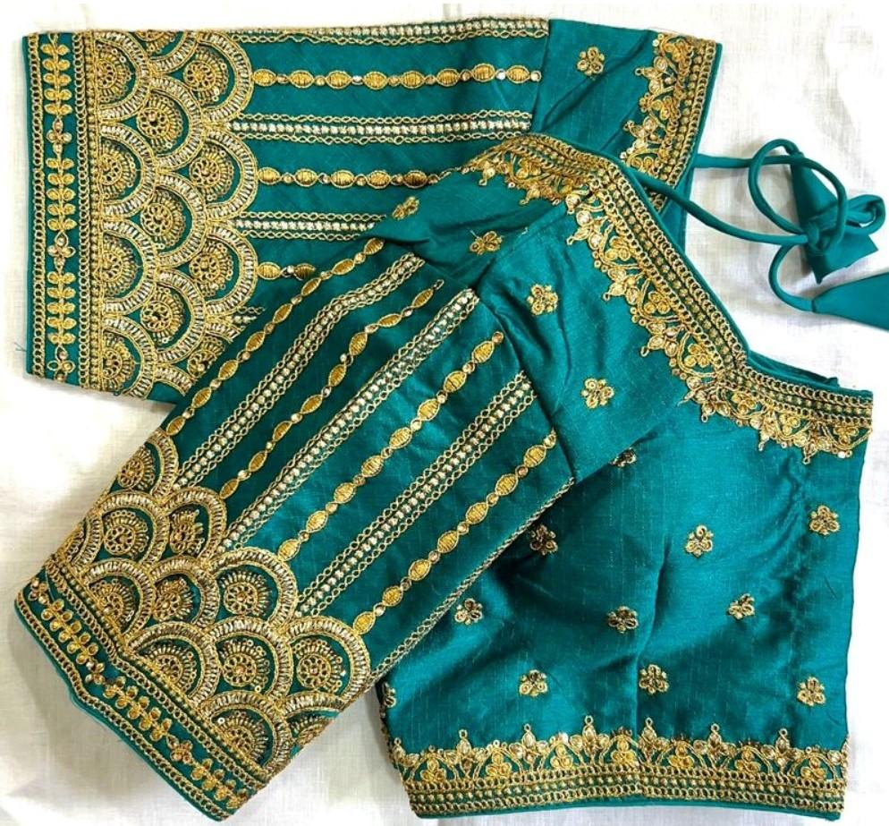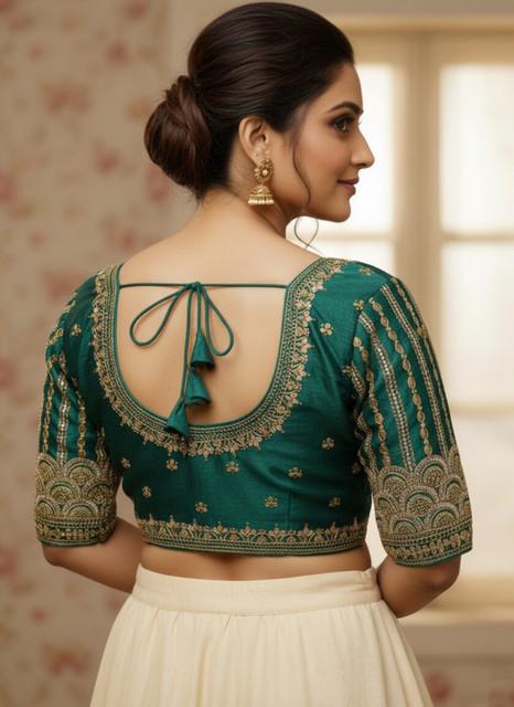 Generic Women's Phantom Silk Embroidered Designer Neck Padded Blouse (Teal 38 Ready (Alterable up to 42)