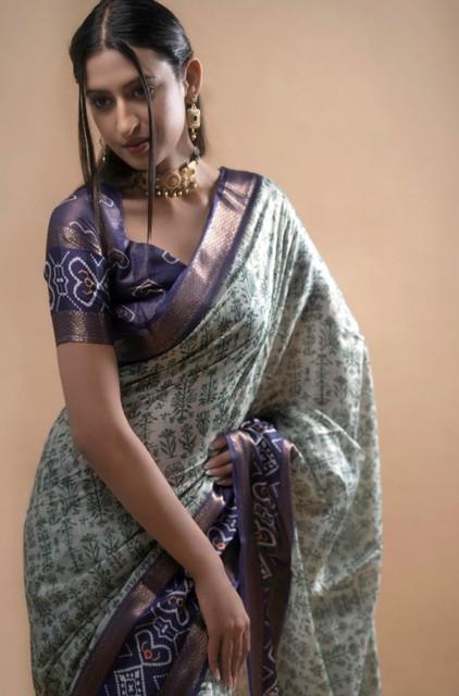 Women's Polyester Printed Saree With Unstitched Blouse 5.5 Mtr