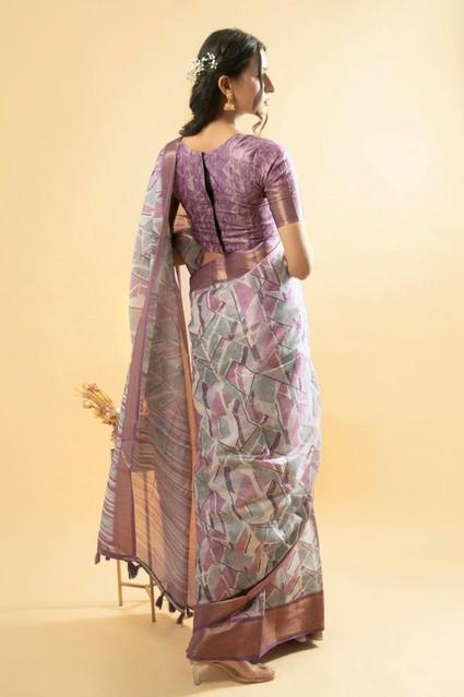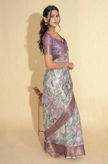 Generic Women's Polyester Printed Saree With Unstitched Blouse 5.5 Mtr (Light Purple)
