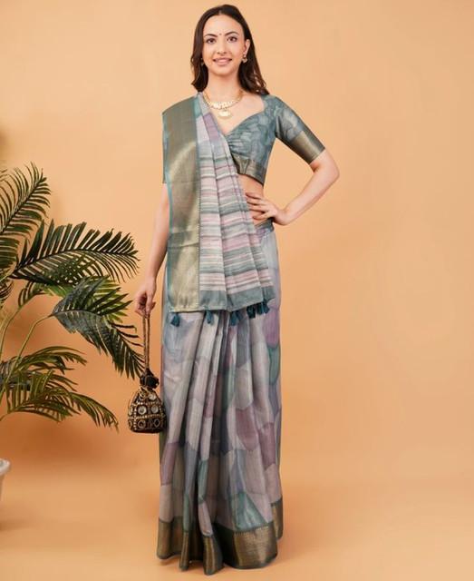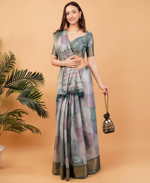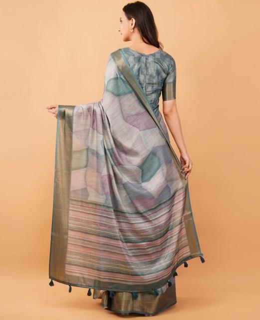 Women's Polyester Printed Saree With Unstitched Blouse 5.5 Mtr