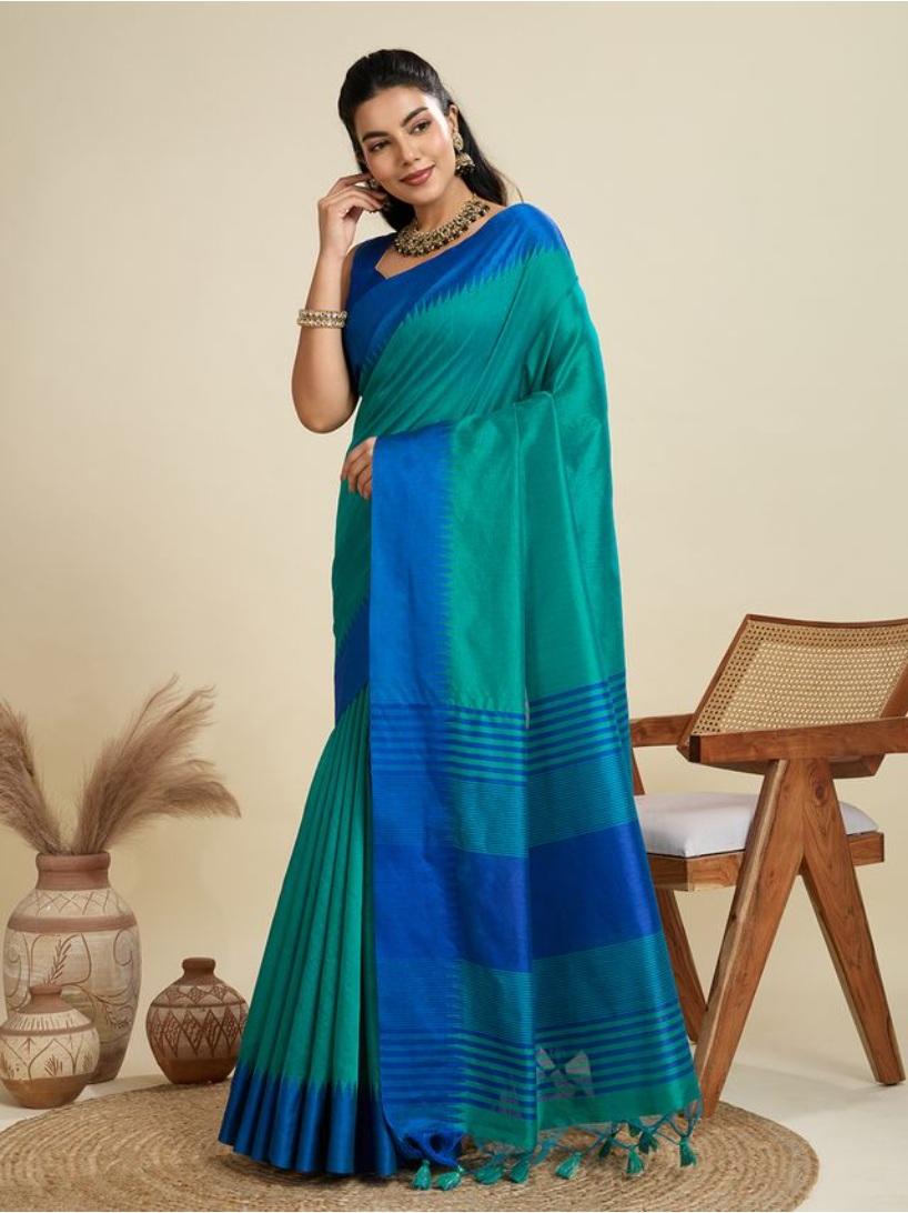 Generic Women's Raw_Silk Woven Saree With Unstitched Blouse 5.5Mtr (Aqua_Blue)