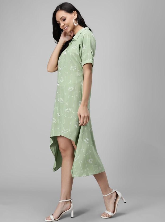 Generic Women's Rayon Printed Half Sleeve Short Tops(Lime Green)