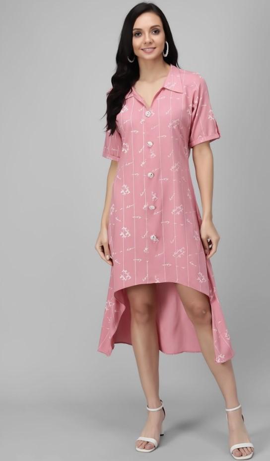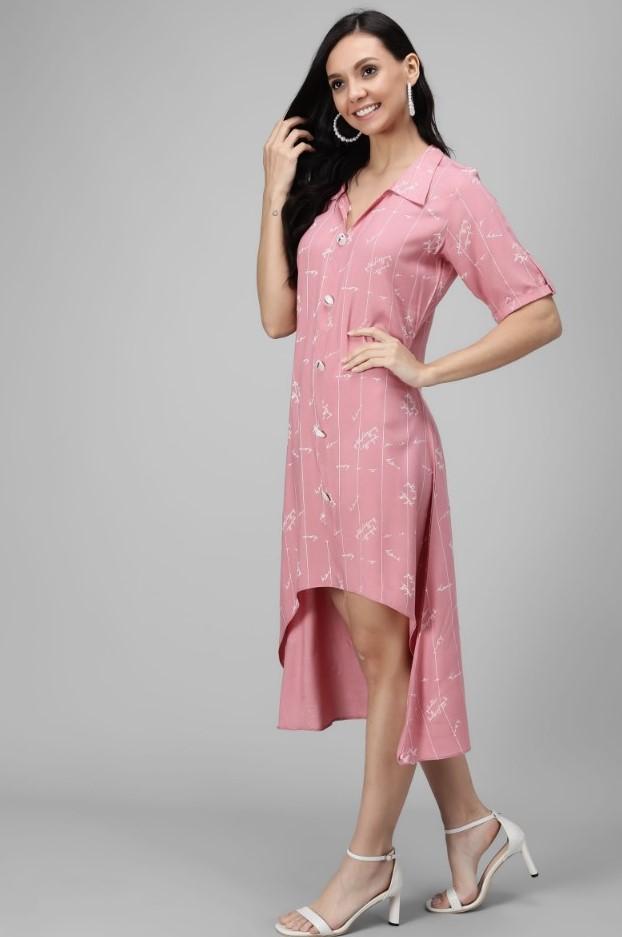 Generic Women's Rayon Printed Half Sleeve Short Tops(Pink)