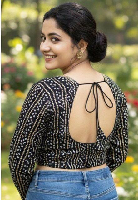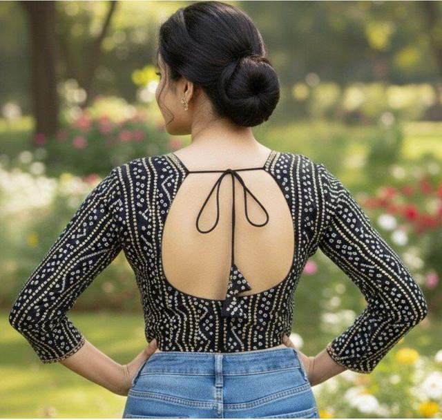 Generic Women's Rayon Sabyasachi Style Round Neck Padded Blouse (Black, 38 Ready Size (Self-Alterable 36–40)