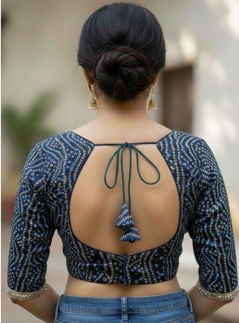 Generic Women's Rayon Sabyasachi Style Round Neck Padded Blouse (Blue, 38 Ready Size (Self-Alterable 36–40)
