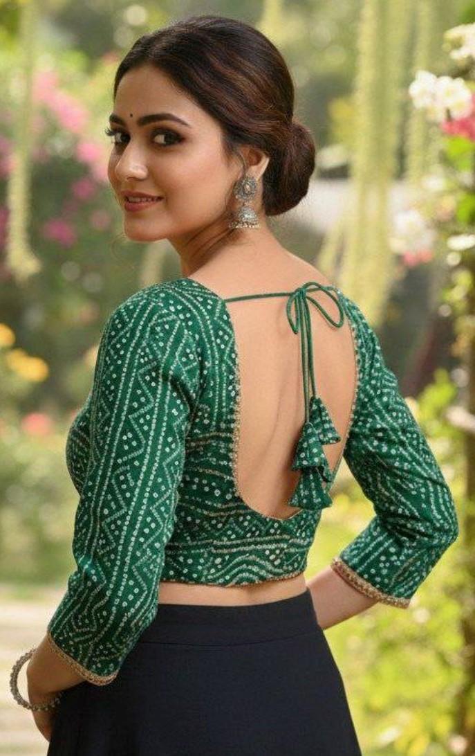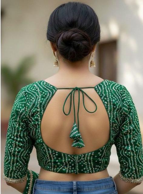 Generic Women's Rayon Sabyasachi Style Round Neck Padded Blouse (Green, 38 Ready Size (Self-Alterable 36–40)