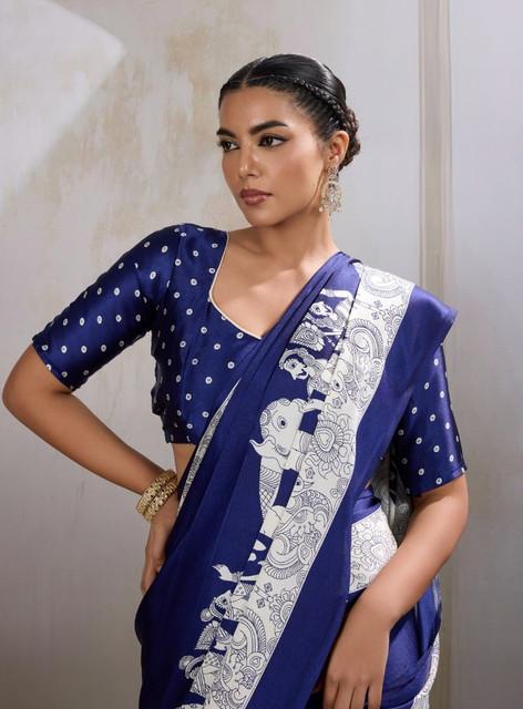 Women's Satin Crepe Printed Saree With Unstitched Blouse 5.5Mtr