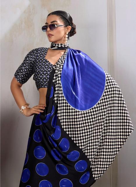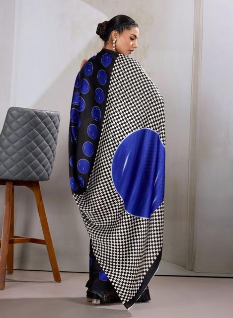 Women's Satin Crepe Printed Saree With Unstitched Blouse 5.5Mtr