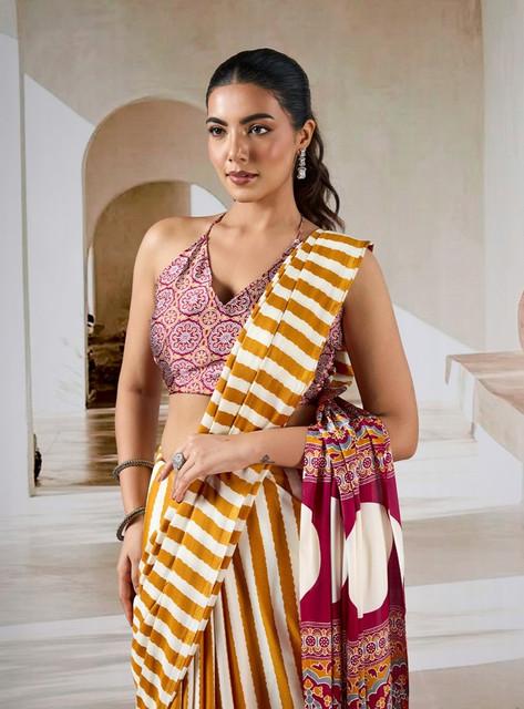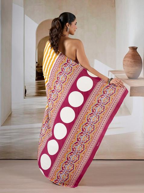 Women's Satin Crepe Printed Saree With Unstitched Blouse 5.5Mtr