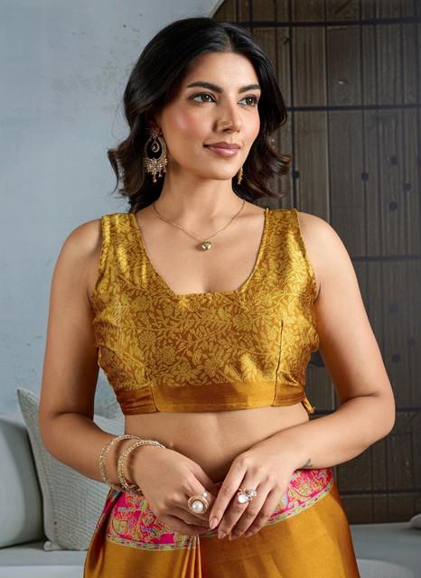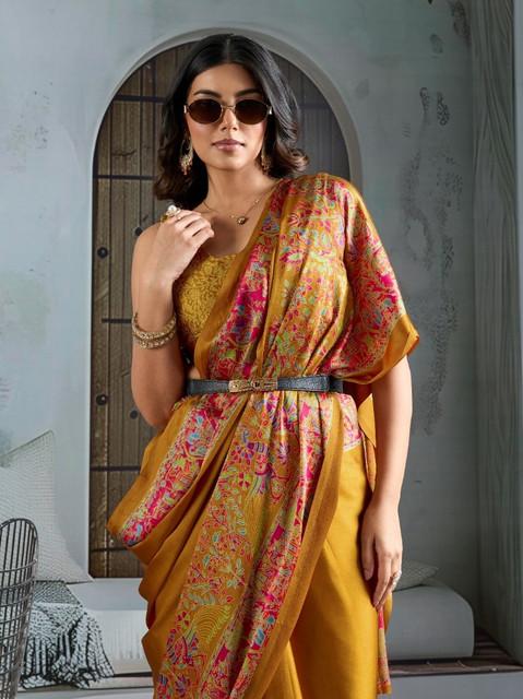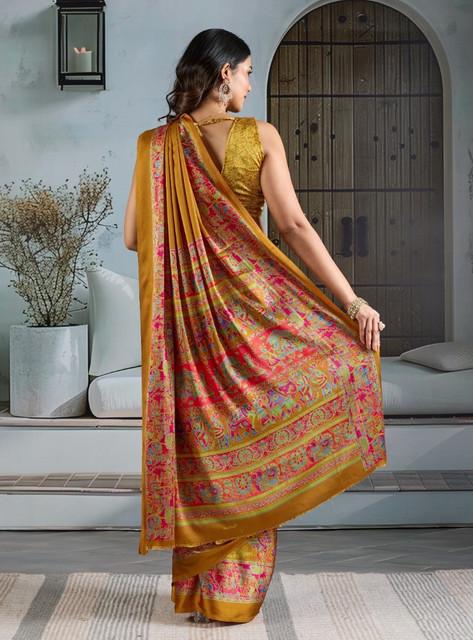 Generic Women's Satin Crepe Printed Saree With Unstitched Blouse 5.5Mtr (Mustard)