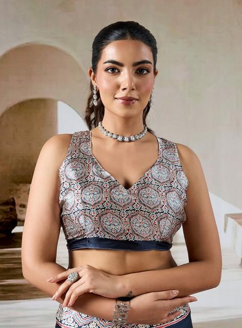 Women's Satin Crepe Printed Saree With Unstitched Blouse 5.5Mtr