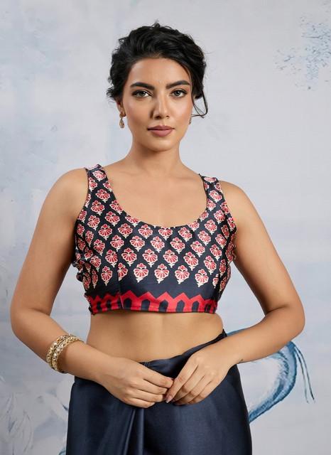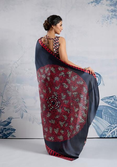 Women's Satin Crepe Printed Saree With Unstitched Blouse 5.5Mtr