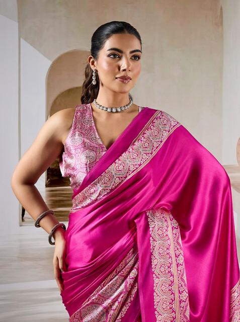 Women's Satin Crepe Printed Saree With Unstitched Blouse 5.5Mtr