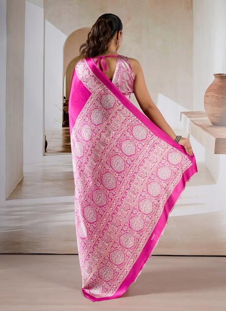 Generic Women's Satin Crepe Printed Saree With Unstitched Blouse 5.5Mtr (Pink)