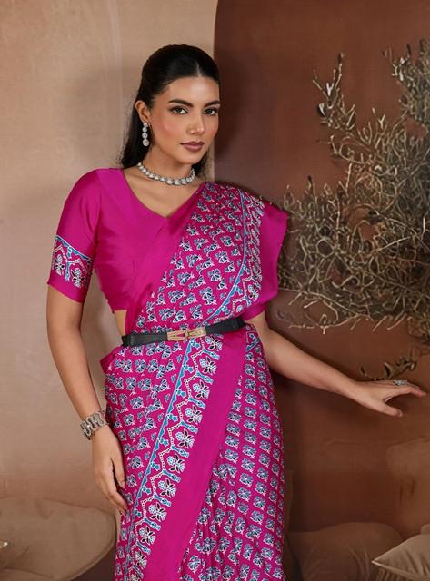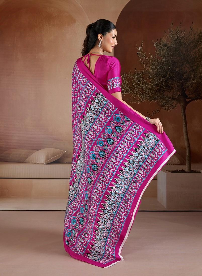 Women's Satin Crepe Printed Saree With Unstitched Blouse 5.5Mtr