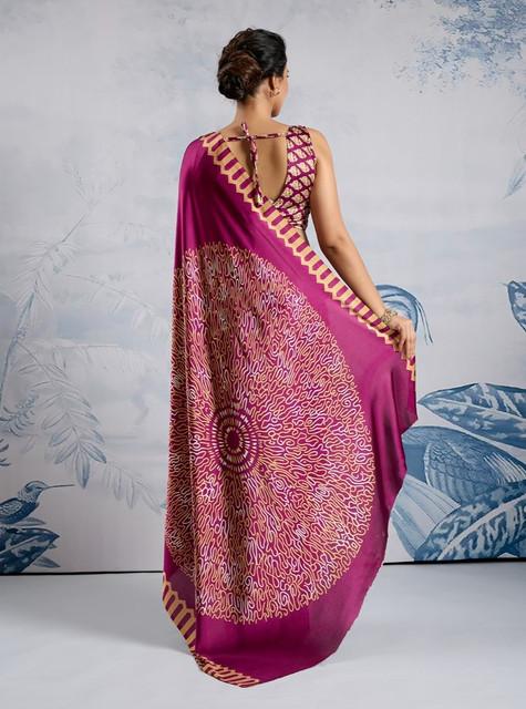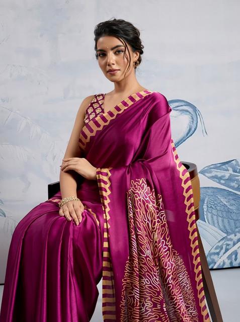 Women's Satin Crepe Printed Saree With Unstitched Blouse 5.5Mtr