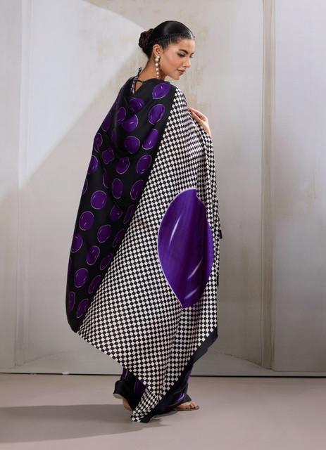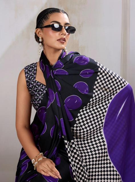 Generic Women's Satin Crepe Printed Saree With Unstitched Blouse 5.5Mtr (Purple)