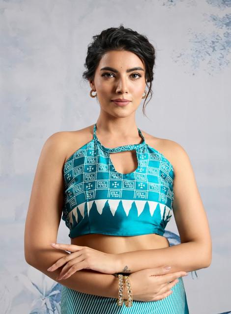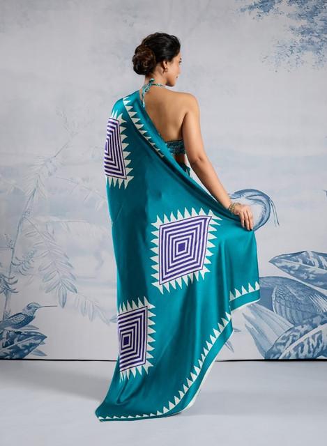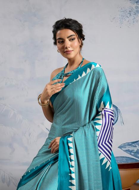 Generic Women's Satin Crepe Printed Saree With Unstitched Blouse 5.5Mtr (Rama Blue)