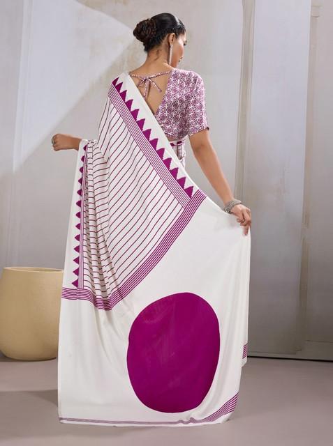 Generic Women's Satin Crepe Printed Saree With Unstitched Blouse 5.5Mtr (White)