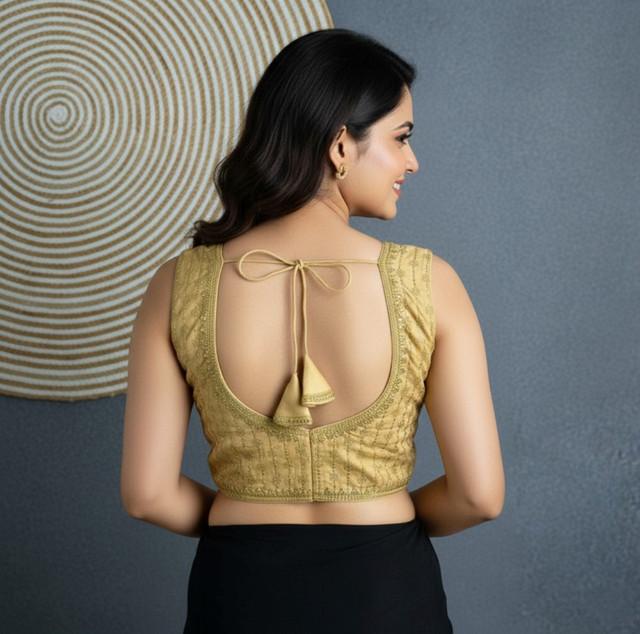 Generic Women's Silk Blend Embroidered V-Neck Non Padded Blouse (Beige 38 Ready (Alterable up to 42)