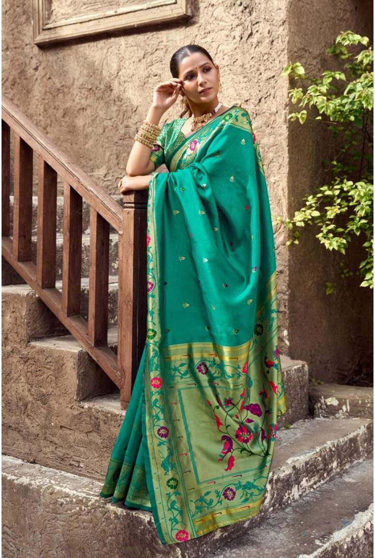 Generic Women's Silk Blend Woven Saree With Unstitched Blouse 5.5 Mtr (Green)