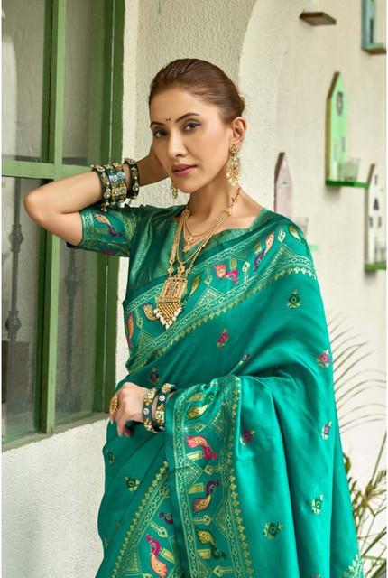 Generic Women's Silk Blend Woven Saree With Unstitched Blouse 5.5 Mtr (Green)