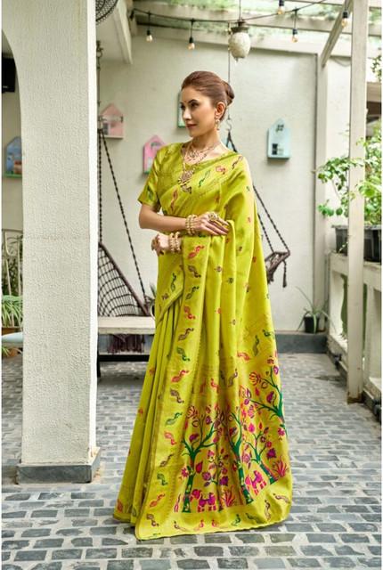 Generic Women's Silk Blend Woven Saree With Unstitched Blouse 5.5 Mtr (Lime)