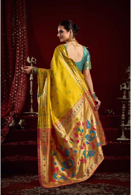 Generic Women's Silk Blend Woven Saree With Unstitched Blouse 5.5 Mtr (Mustard)