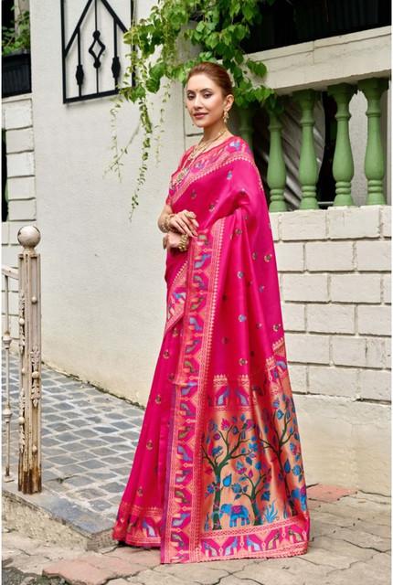 Generic Women's Silk Blend Woven Saree With Unstitched Blouse 5.5 Mtr (Pink)