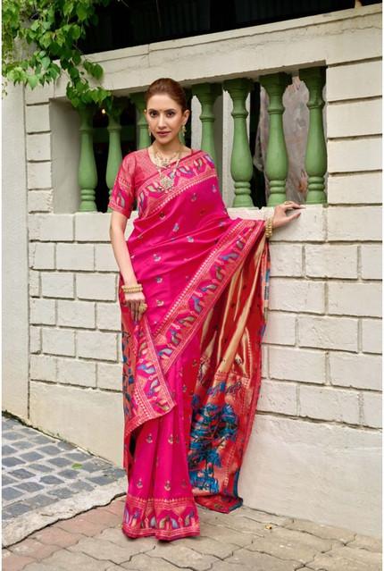 Women's Silk Blend Woven Saree With Unstitched Blouse 5.5 Mtr