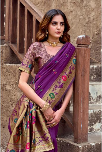 Generic Women's Silk Blend Woven Saree With Unstitched Blouse 5.5 Mtr (Purple)