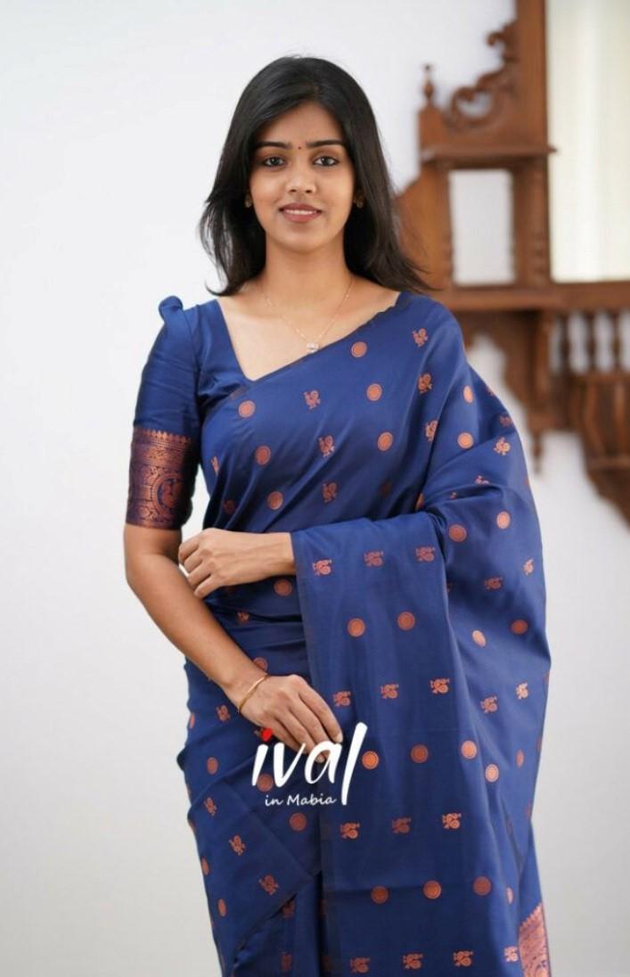 Generic Women's Soft Lichi Silk Printed Saree With Unstitched Blouse 5.5Mtr (Blue)