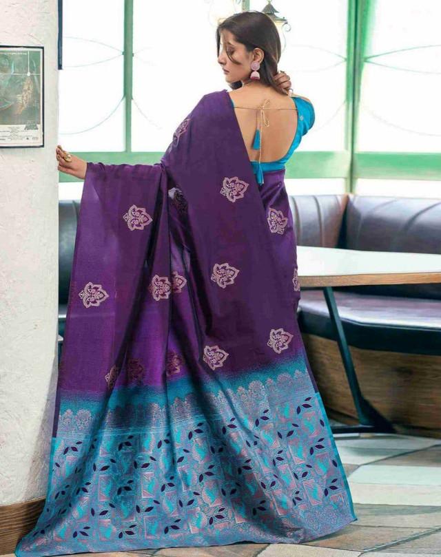 Generic Women's Soft Lichi Silk Printed Saree With Unstitched Blouse 5.5Mtr (Blue)