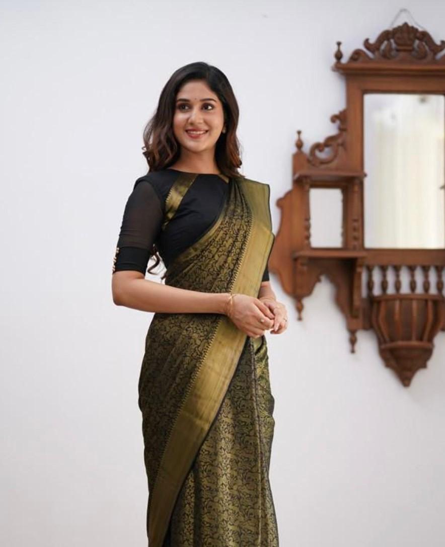 Generic Women's Soft Lichi Silk Printed Saree With Unstitched Blouse 5.5Mtr (Green)