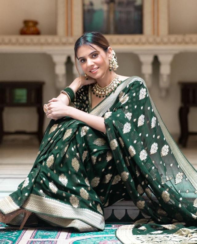 Generic Women's Soft Lichi Silk Printed Saree With Unstitched Blouse 5.5Mtr (Green)