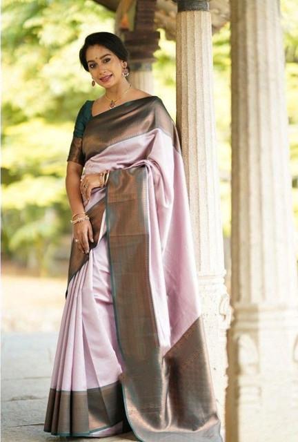 Generic Women's Soft Lichi Silk Printed Saree With Unstitched Blouse 5.5Mtr (Light-Pink)