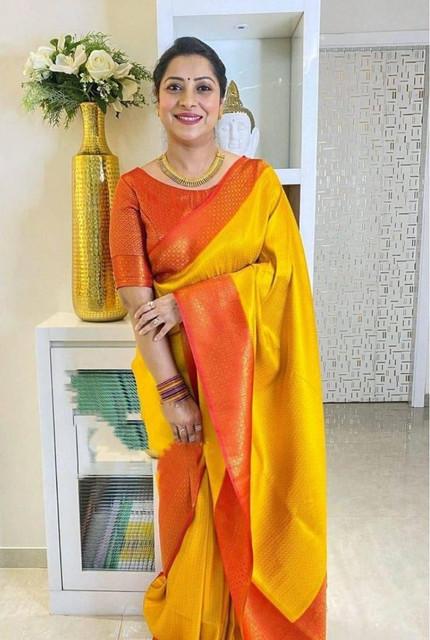 Generic Women's Soft Lichi Silk Printed Saree With Unstitched Blouse 5.5Mtr (Mustard )