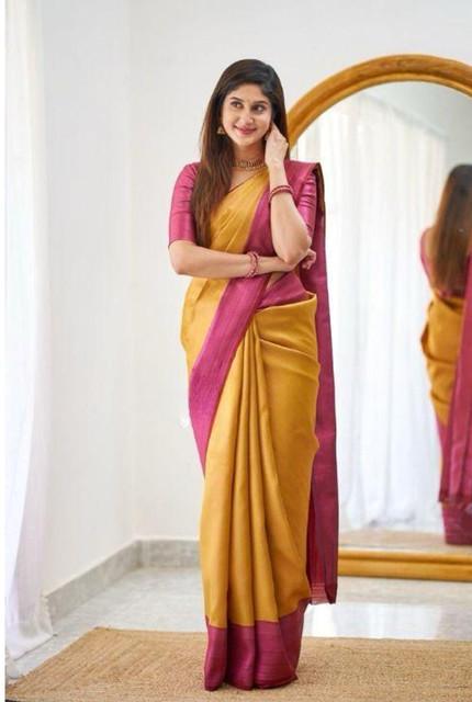 Generic Women's Soft Lichi Silk Printed Saree With Unstitched Blouse 5.5Mtr (Mustard )