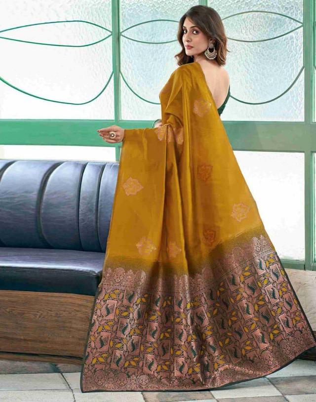 Generic Women's Soft Lichi Silk Printed Saree With Unstitched Blouse 5.5Mtr (Mustard )